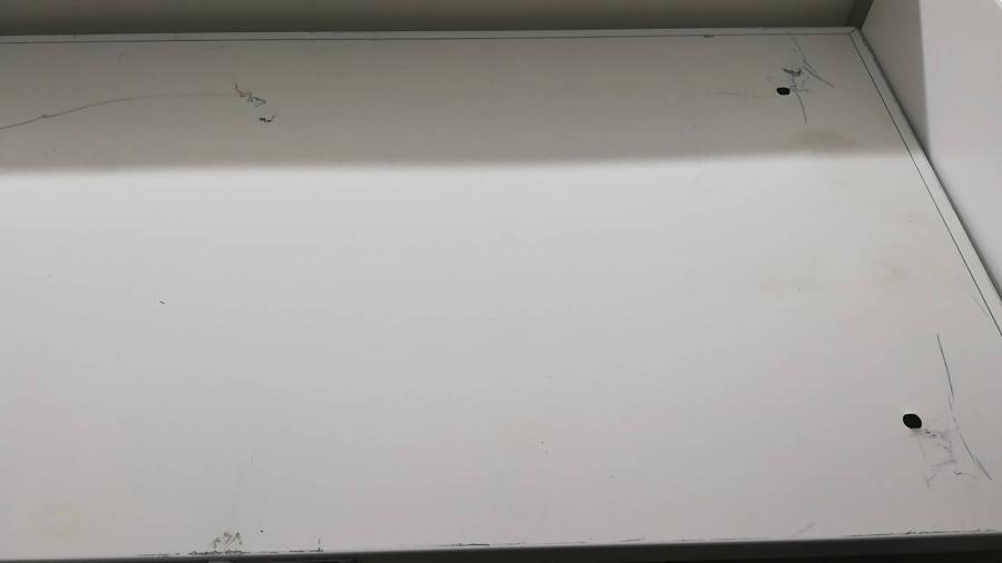 - 目立つ箇所あり傷・凹みが多数、深い傷・凹みが一部ある。(例、天板、正面、背部、サイド部分にある。)