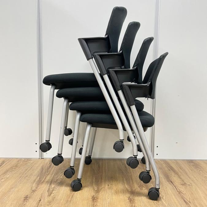【セット商品(チェア×4脚)】【シンプルスマートなスタッキングチェア!分厚いクッションで長時間でも快適な座り心地!】/オススメ(おすすめ) /人気商品【弊社使用欄:A01037619】■スタッキングチェア 肘付ミーティングチェア ■固定肘 ■キャスター付 ■ブラック ■背面樹脂/コクヨ(KOKUYO/プロッティ