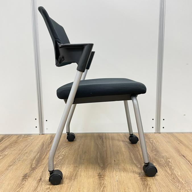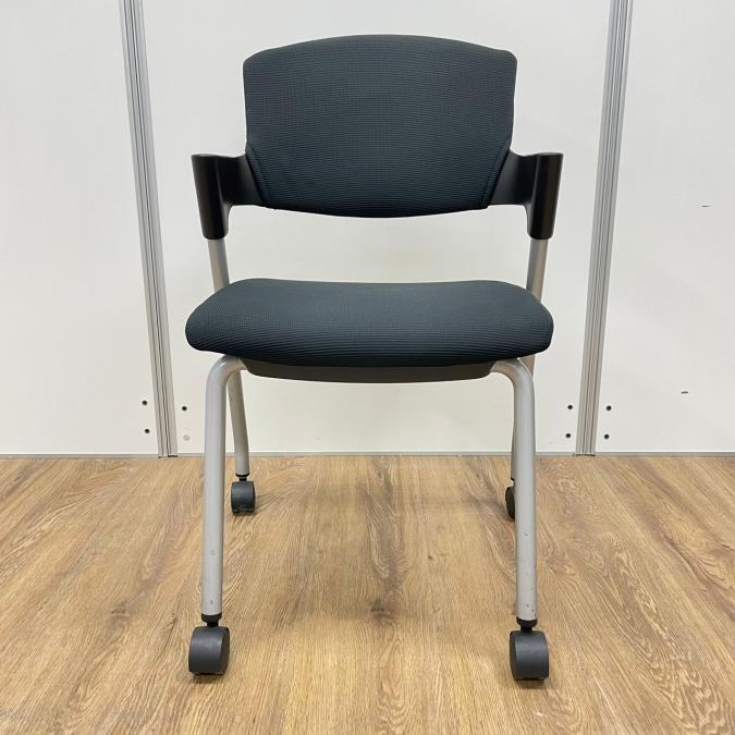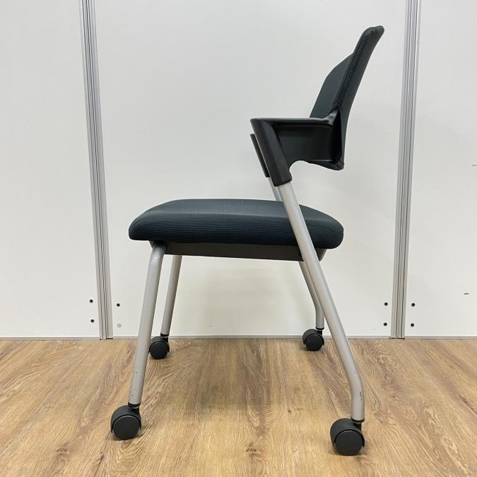 【シンプルスマートなスタッキングチェア!分厚いクッションで長時間でも快適な座り心地!】■スタッキングチェア 肘付ミーティングチェア ■固定肘 ■キャスター付 ■ブラック ■背面樹脂/コクヨ(KOKUYO/プロッティ