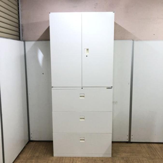 オカムラ 3Sシリーズ スタンダードなラテラル+両開きの上下書庫セット 鍵付き ホワイトのハイタイプのキャビネットが入荷- 名古屋千種店