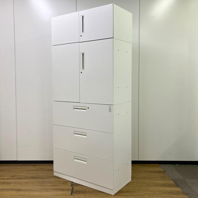 【収納量抜群の書庫セット!観音開き+引き出しタイプの人気の組み合わせ!】■コクヨ(KOKUYO)製 エディア(EDIA)シリーズ 両開き+3段ラテラル 書庫セット ハイキャビネット H2160㎜ ■ホワイト ■シリンダー錠