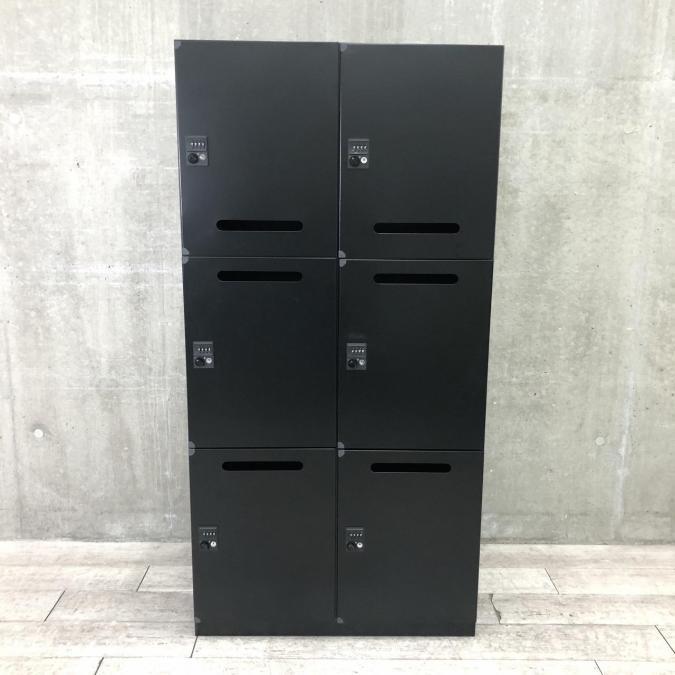 【入替セールにつき40%OFF!】【投入口付き!オシャレなブラック!】◆豊国工業製/6人用パーソナルロッカー/ブラック ※投入口あり/ダイヤル錠 【フリーアドレス化に欠かせないメールロッカー!】- つくば店
