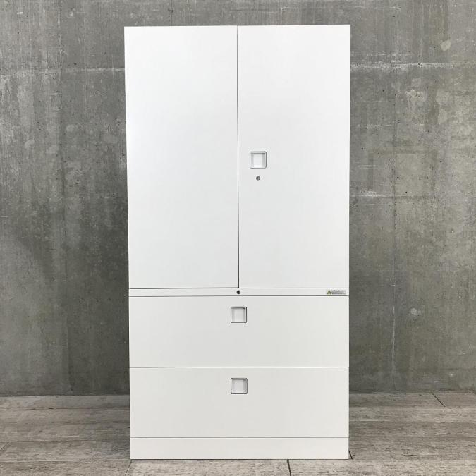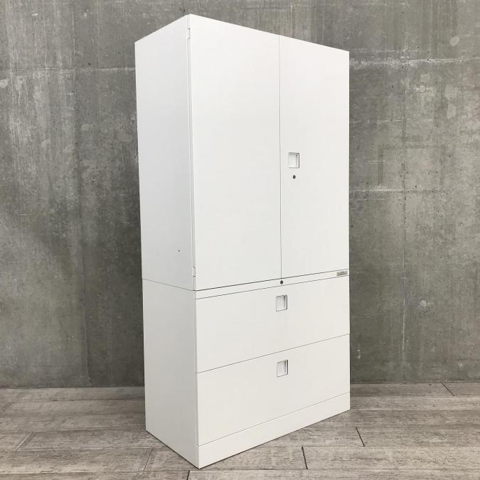 【中古では珍しい高さ!!】オカムラ(okamura)レクトラインシリーズ(RectLine) 上下書庫セット/両開き+2段ラテラル/ネオホワイト)人気キャビネット- 足立・葛飾店