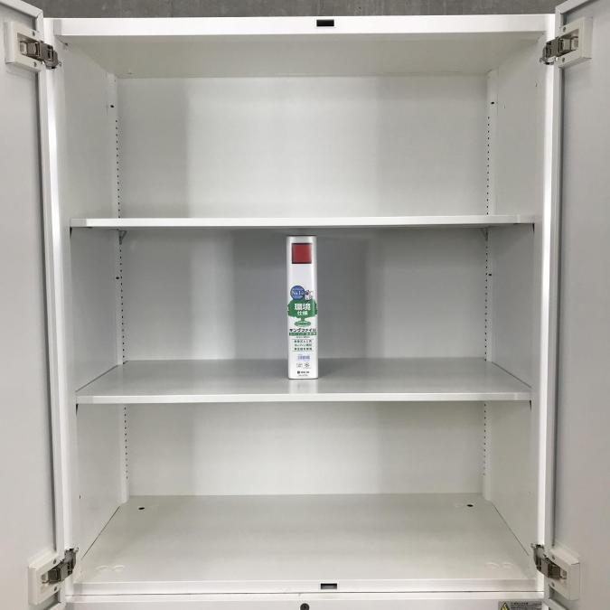 上段はA4ファイルを3段収納可能な両開き書庫、