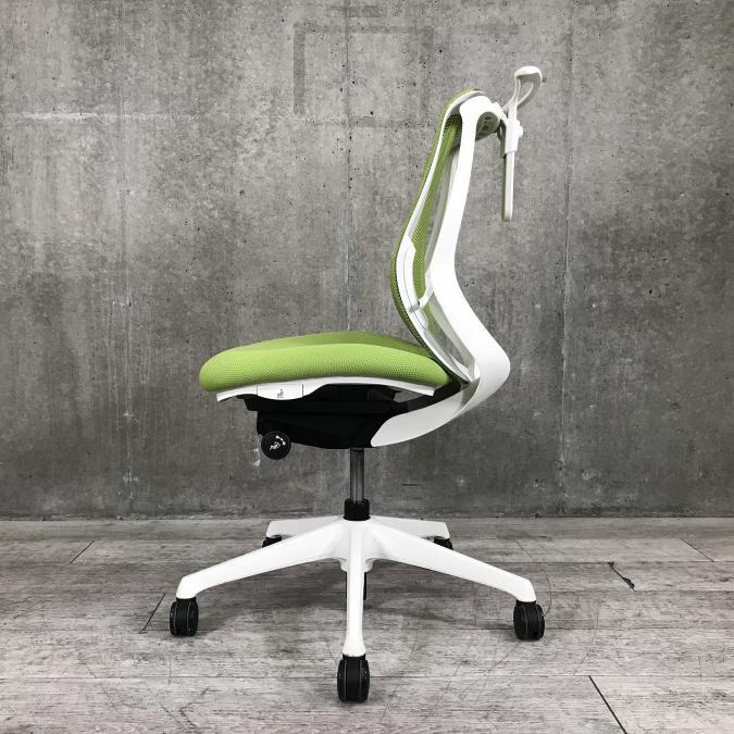 【在庫入替セール品】人気★オカムラ シルフィー ローバックメッシュ ライムグリーン色 ホワイト×グリーンのPOPなカラーリング 前傾機能付きサーキュラーバリューCO2削減量の算出について