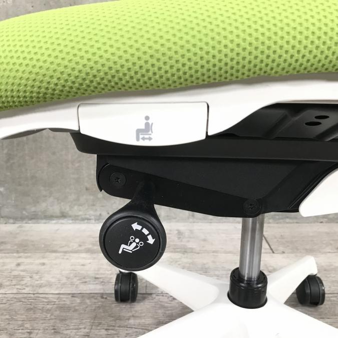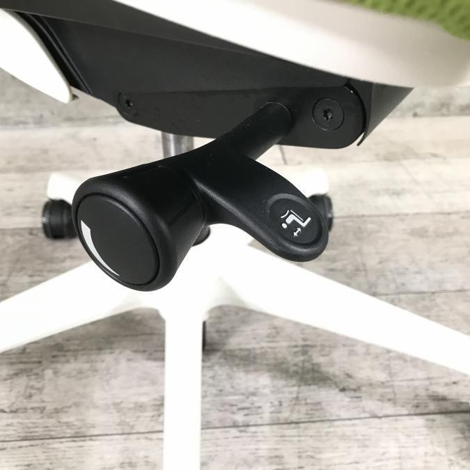 - 座面右下のダイヤル操作で、リクライニングの強弱調整が行えます。これまでのダイヤル式よりも、少ない回転数で、最弱?最強の調整が可能です。