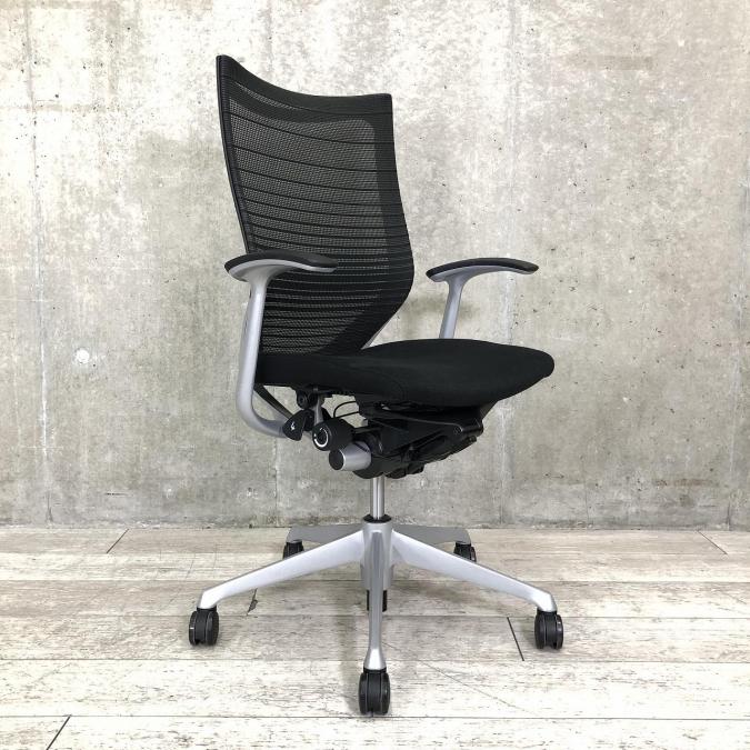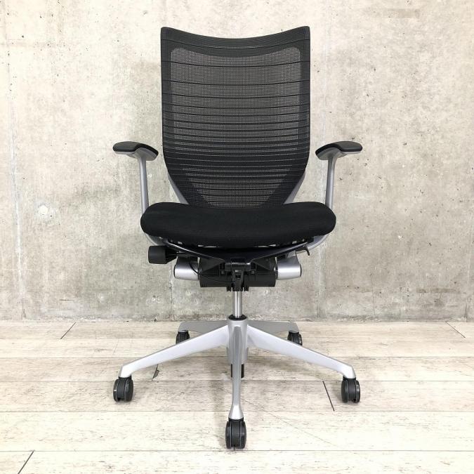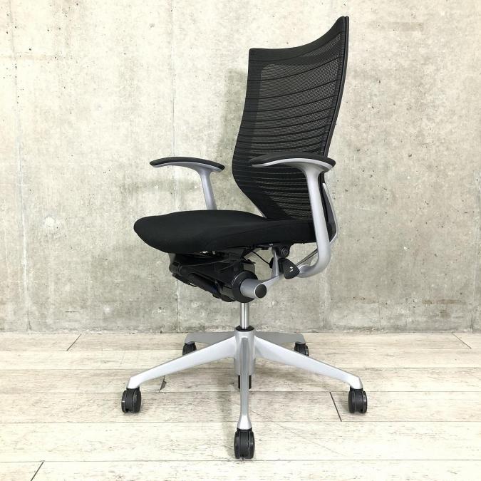 【長時間の着座でも疲れにくい!ベストなポジションが得られる先進設計!】■オカムラ バロンチェア 肘付 ブラック ハイバック シルバーフレーム ■良い椅子は腰を守る投資です!【Okamura Baron】