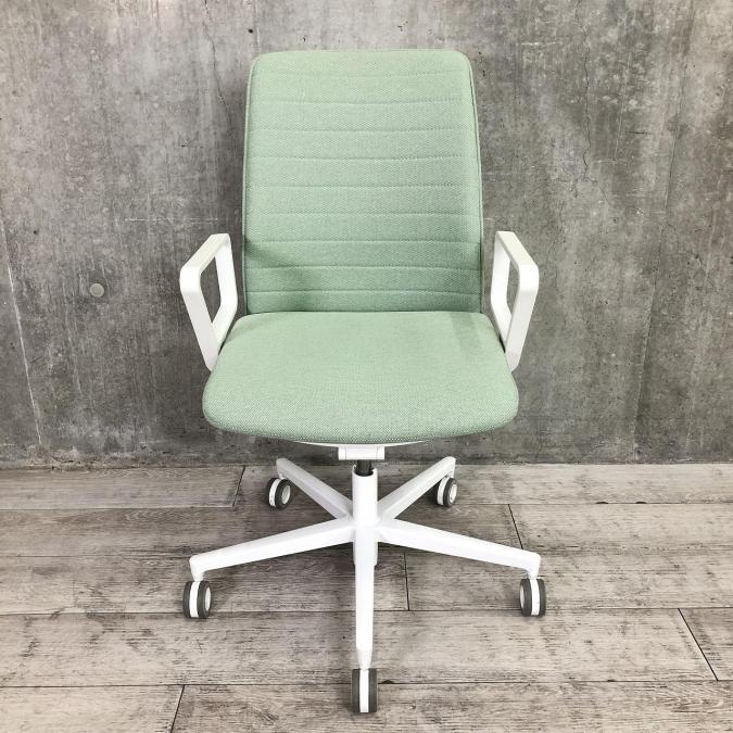 【在庫入替セール品!】ワークチェア 固定肘/サークル肘 ストライプ オパールグリーン ホワイト脚/アルミ脚 ウレタンキャスター ・KOKUYO/コクヨ ・FABRE/ファブレ- 品川・三田店