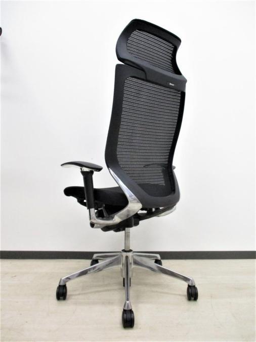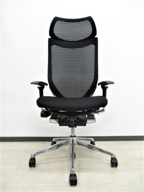 【オフィスの執務室、会議室におすすめ!】■オカムラ(okamura)製 バロン(Baron)チェア 肘付き ハイバック ■背・座面メッシュ ■可動肘 ■ヘッドレスト付き ■ブラック【硬めの座面が大人気!国産メッシュチェアの代表格!】
