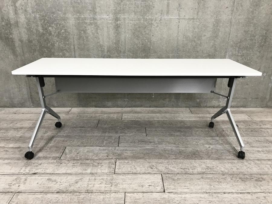 コクヨ製のスタッキングテーブル(折り畳みテーブル)【リーフライン/ホワイト】が値下げされました。 *良品を格安で!「オフィスバスターズ福岡南店」は、福岡を拠点として、全国へ中古オフィス用品・オフィス家具を提供しております。/ 天神