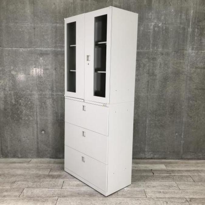 【中古】 レクトライン 4B363Y Z13 オカムラ/okamura ハイキャビネット/両開き+3段ラテラル 445074