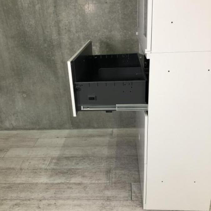 - 一部不具合ありそ引出の開閉不可、施錠不可、棚板無しといったの書庫の本来の効用を果たすための機能以外の一部が使用不可(例、扉、引出の開閉がしづらいなどがある。 )