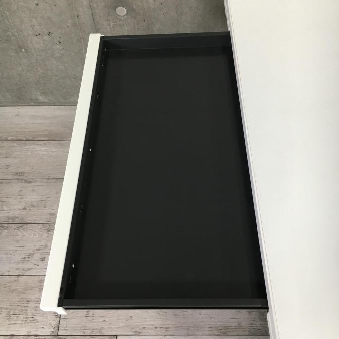 オカムラ アドバンス-Sデスク 平机 センター引出し付 人気のホワイト天板 ゆったりめのサイズのW1400 配線孔2カ所 ※樹脂部分に日焼けあり 【愛知・名古屋・豊田・静岡・浜松】