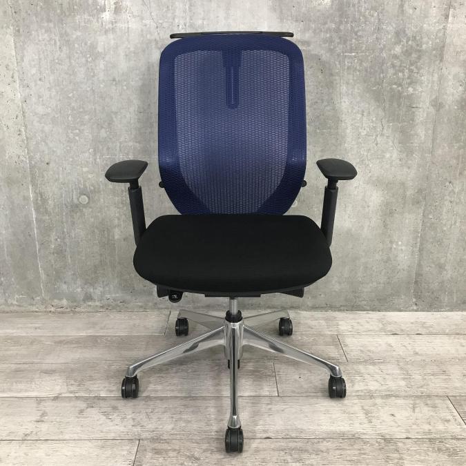 【新品ヘッドレスト交換済み】オカムラ/シルフィー/ブルー/可動肘
