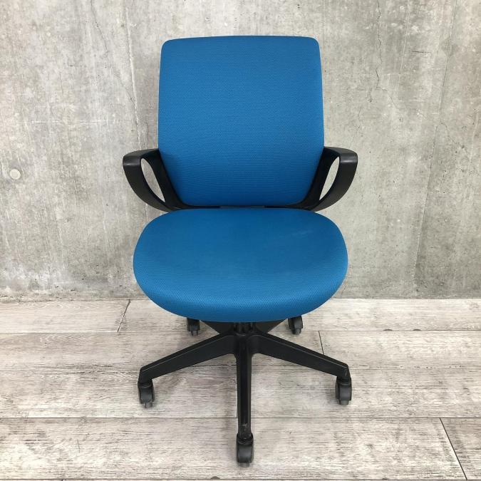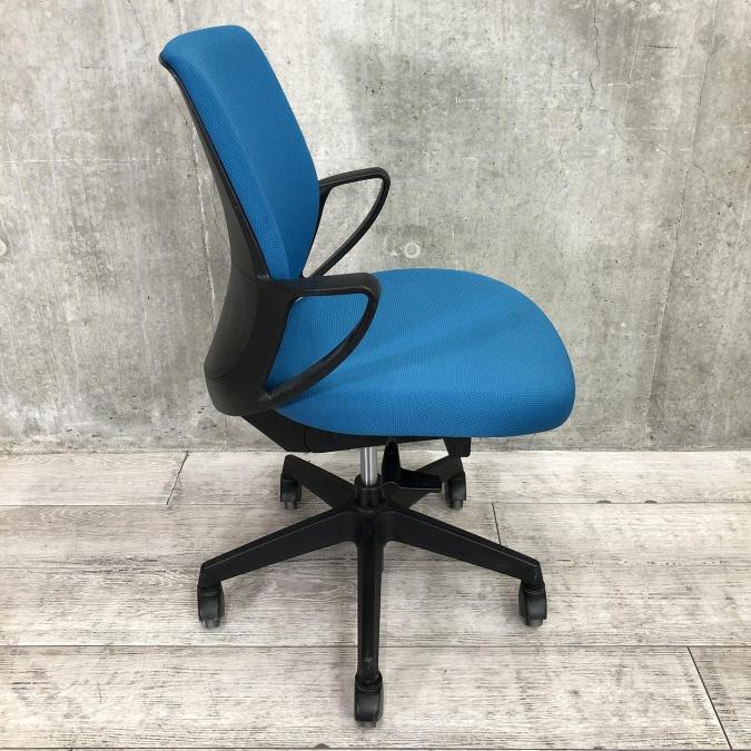 【デスクにスッキリ収納できるコンパクト設計!スマートデザインで使い勝手抜群!】■コクヨ(KOKUYO)製 ピコラ(picora)チェア 肘付き ローバック ■サークル肘 ■プルシアンブルー×ホワイトシェル×脚ブラック※背面日焼け有