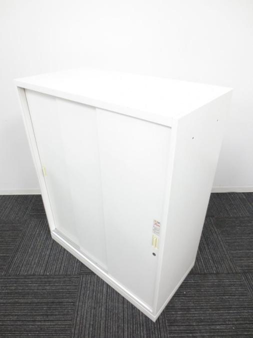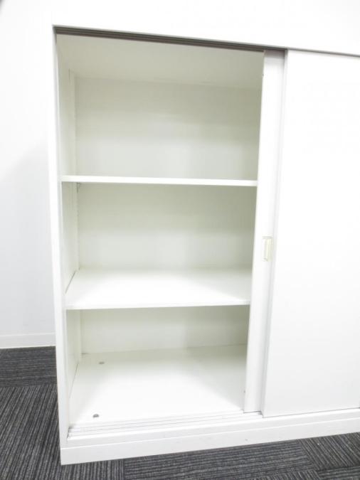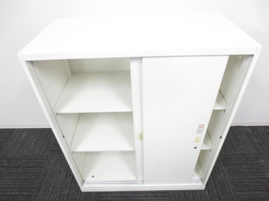 2枚引き戸書庫 オカムラ レクトライン 鍵付き シリンダー錠 ホワイト 天板無し スライド式の扉のため導線を邪魔しません