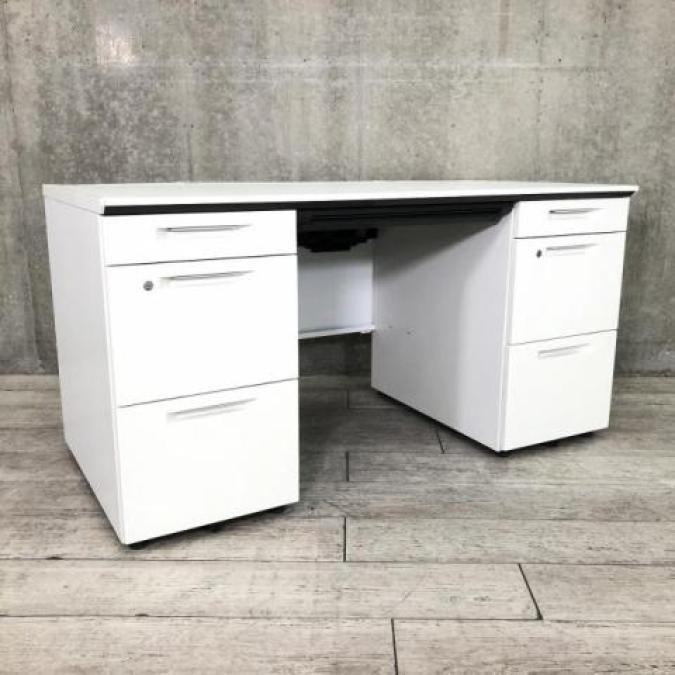 コクヨのIS両袖机入荷!中古 両袖 机 事務机 オフィス ホワイト デスク W1400×D700×H720 KOKUYO IS スタンダードデスク オフィスバスターズ 外部倉庫在庫