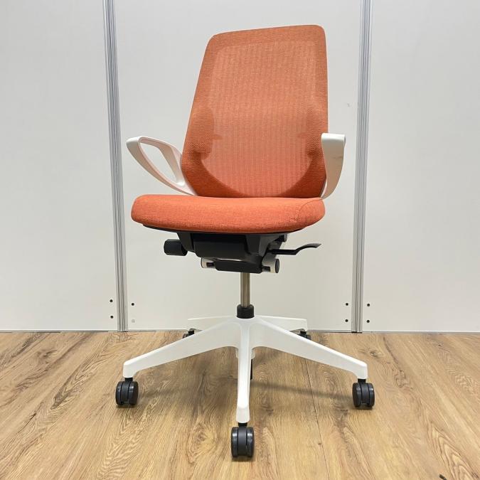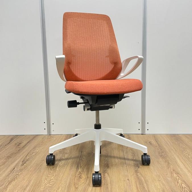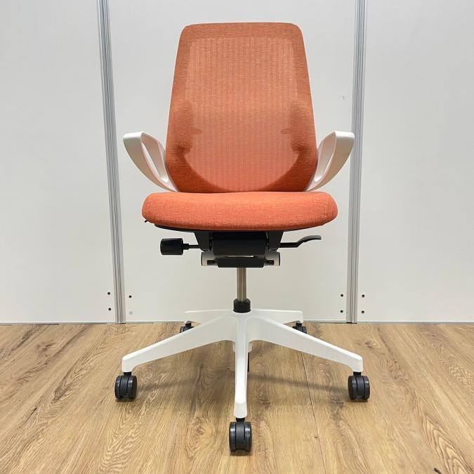 【訳あり品】イトーキ製 ノートシリーズ バーシモンオレンジ テクスチャードメッシュ 固定肘付き オシャレなデザイン! 肘付きハイバックチェア!!※京都東寺店現物画像※- 京都東寺店