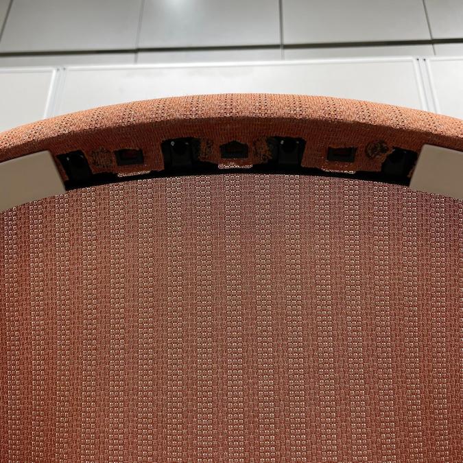 樹脂部分の露出を抑え、背のフレームまでファブリックで包み、