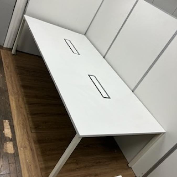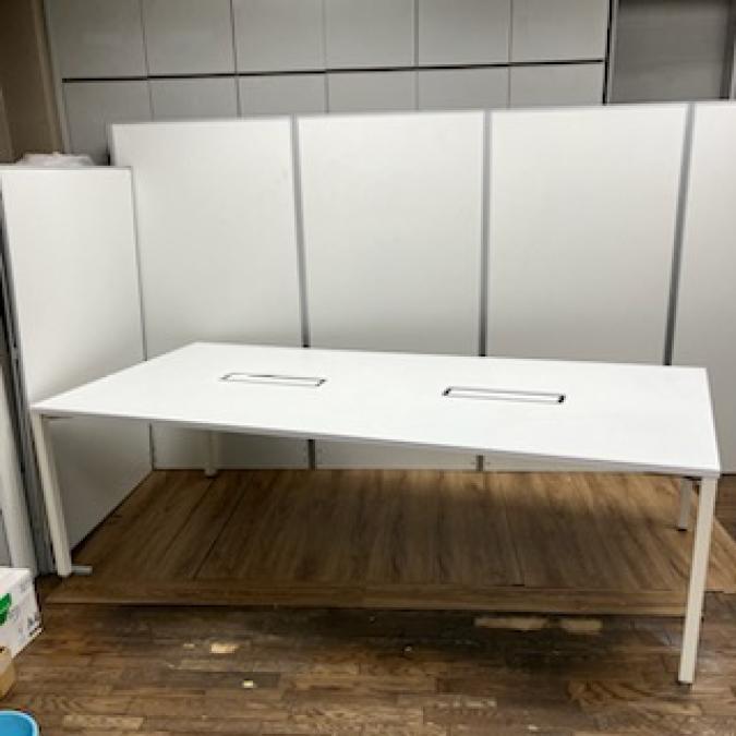 【商品入替のため、残り1台限り】【配線ダクト付き!】無駄を省いたシンプルなデザインの大型テーブル ミーティングテーブル!!- 京都東寺店