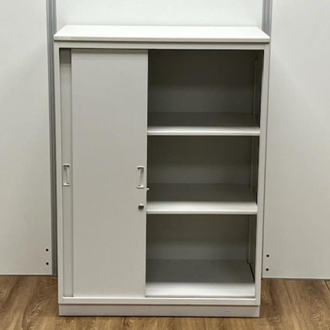 【イトーキ製の開閉スペースを確保した人気のキャビネット!】■3枚引き違いキャビネット ■イトーキ ■シンライン ■幅800mm×奥行き450mm×高さ1100mm 鍵付き書庫 オフィスバスターズ東大阪店
