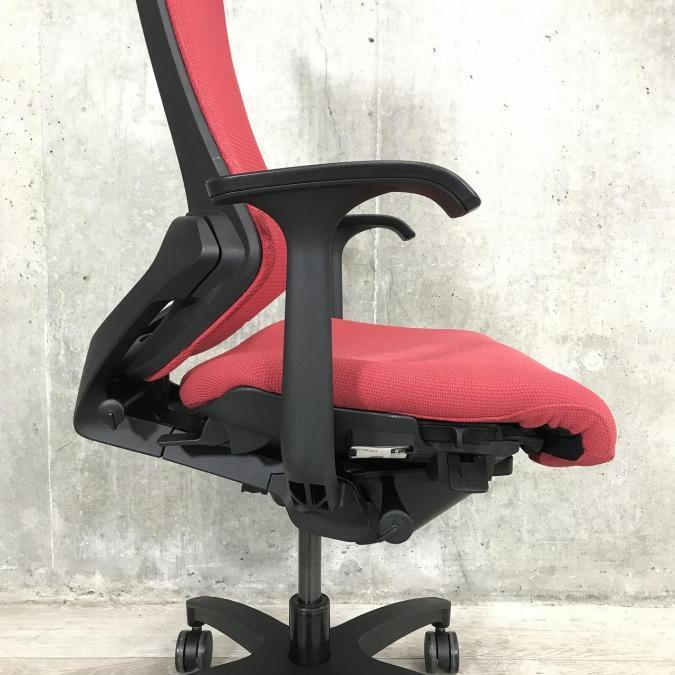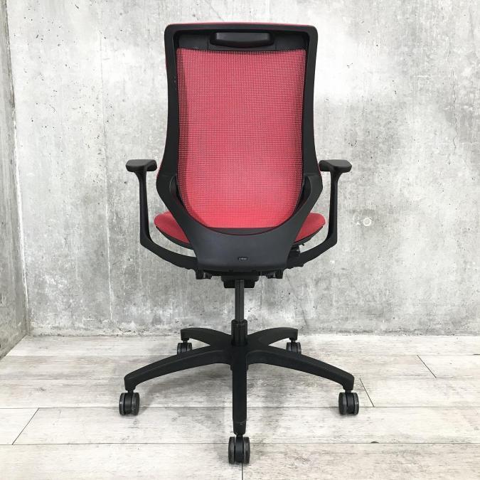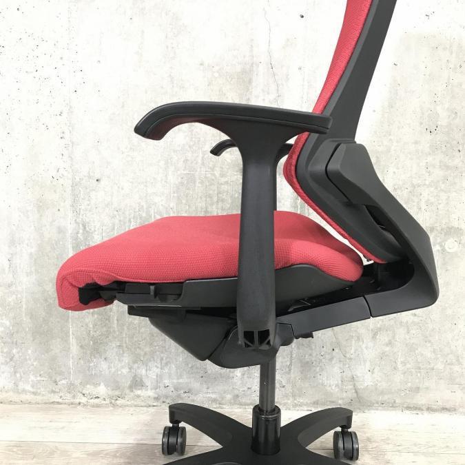 【三次元フォルムが腰にフィット!】■イトーキ製 エフチェア 肘付 ラズベリーレッド ■姿勢の変化にフレキシブルに対応! A00926685- 川崎店