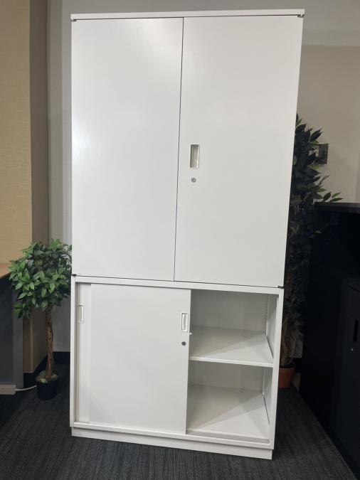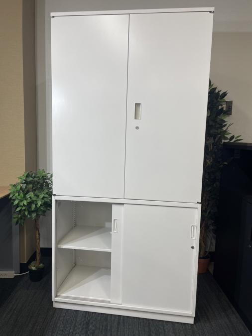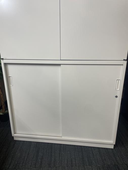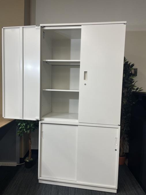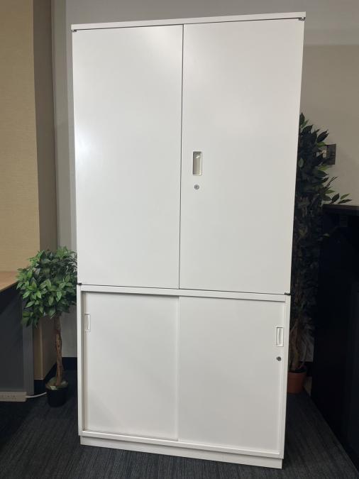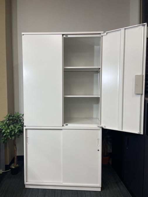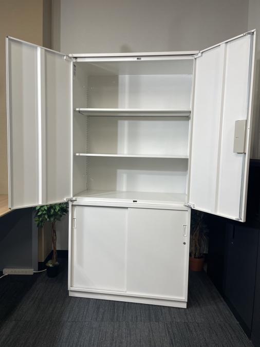 【足元スライド引き戸だから開閉スペースに困りません!】■ITOKI(イトーキ) シンライン(Thin Line) 両開き戸タイプ 書庫 ■色:ホワイト 九州 福岡 オフィス家具- 福岡南店