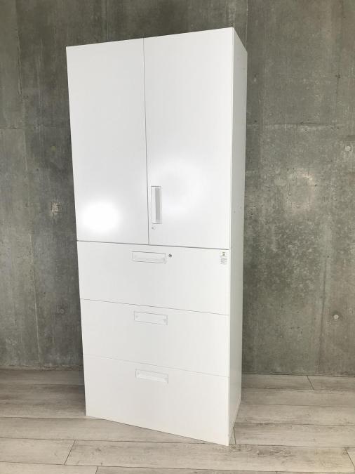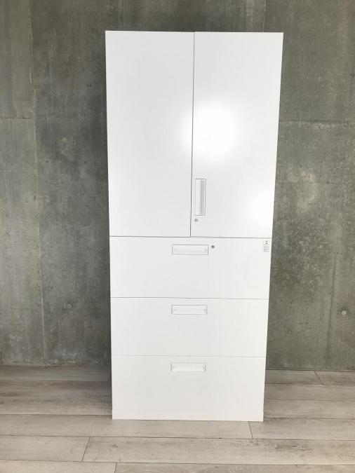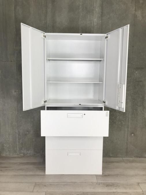 【収納量抜群の書庫セット!観音開き+引き出しタイプの人気の組み合わせ!】■コクヨ(KOKUYO)製 エディアシリーズ(EDIA) 両開き+3段ラテラル 書庫セット ハイキャビネット ■シリンダー錠 ■ホワイト