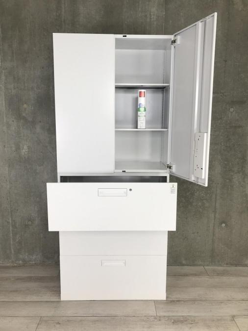 両開き書庫と三段ラテラル書庫の上下セット商品で収納力も抜群です!!