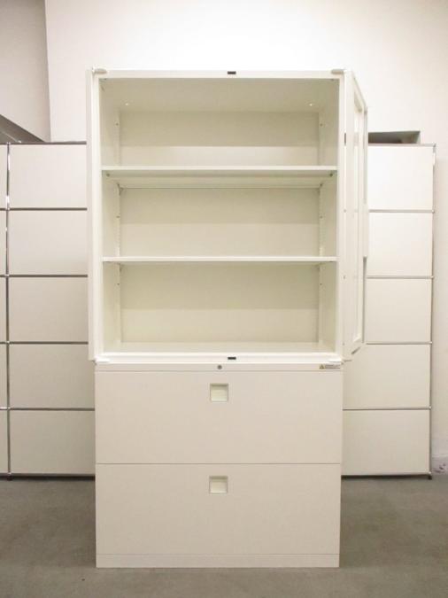 使い勝手抜群の上下書庫セット!上段オープン+下段3段ラテラル仕様! ■オカムラ/レクトライン/ホワイト
