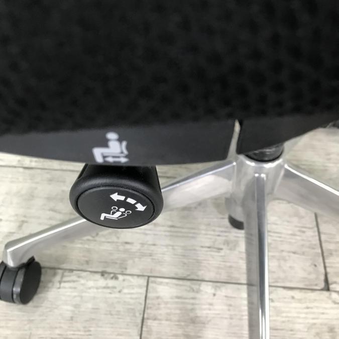 - 座面右下のダイヤル操作で、リクライニングの強弱調整が行えます。これまでのダイヤル式よりも、少ない回転数で、最弱?最強の調整が可能です。