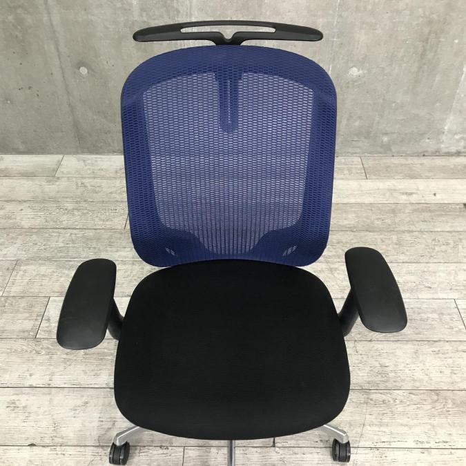 【快適とスタイルを両立!長時間作業に最適な高機能!】大人気チェアがヘッドレスト付きで入荷! ■オカムラ/シルフィーメッシュ/ブルー 固定アームレスト付