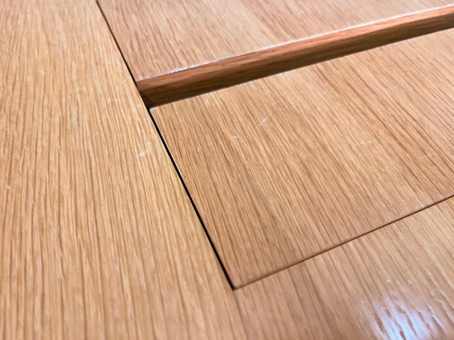 テーブルトップには、弾力性のあるポリプロピレン材を挟み込んだブナエッジがついています。