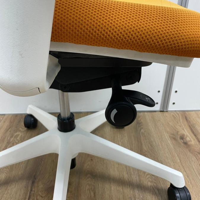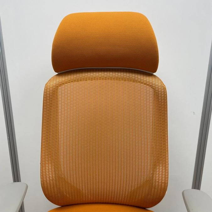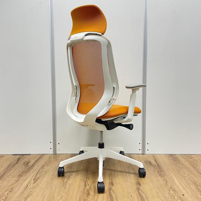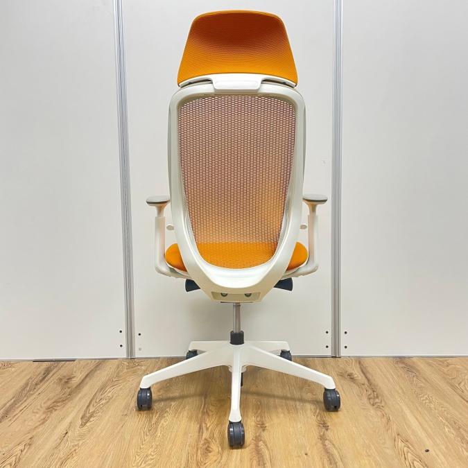【現品限り】オカムラ製 シルフィーシリーズ オレンジカラー ホワイトフレーム ヘッドレスト 可動肘 肘付きハイバックチェア!!※京都東寺店現物画像※- 京都東寺店