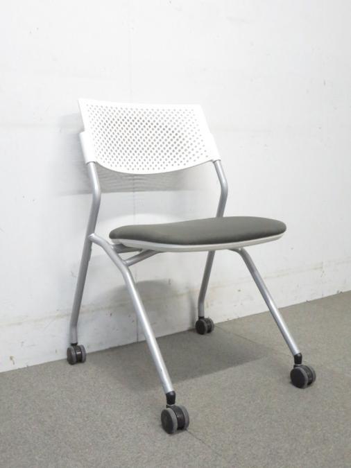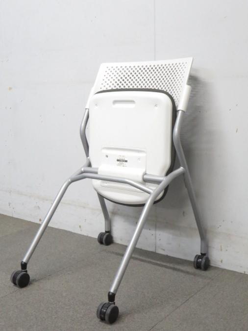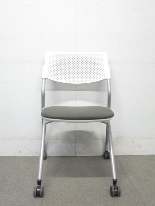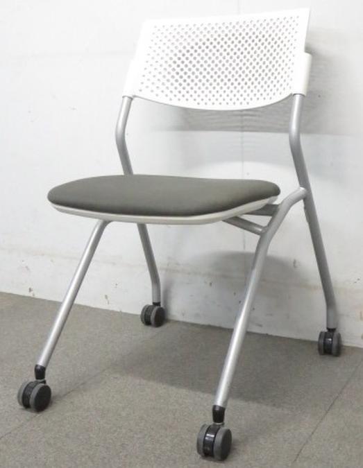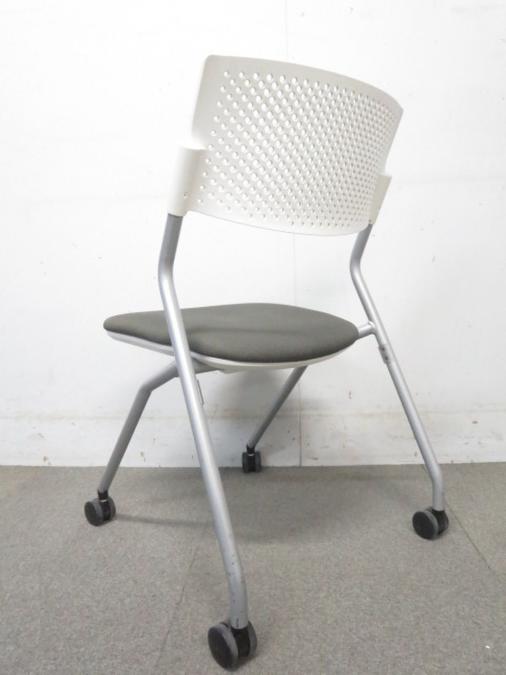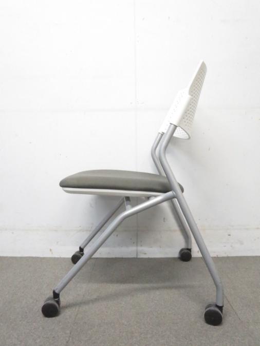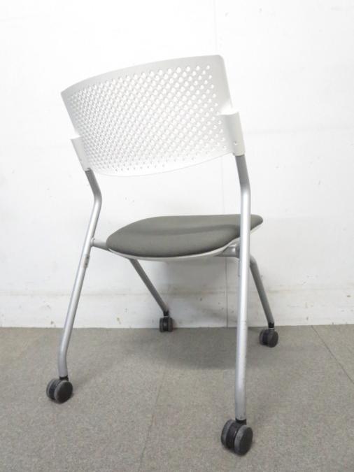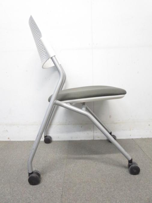 【スムーズに動かせるキャスター付!】■ウチダ ネスティングチェア グレー FM-265 ■座面を跳ね上げてコンパクトに収納できる!- 川崎店