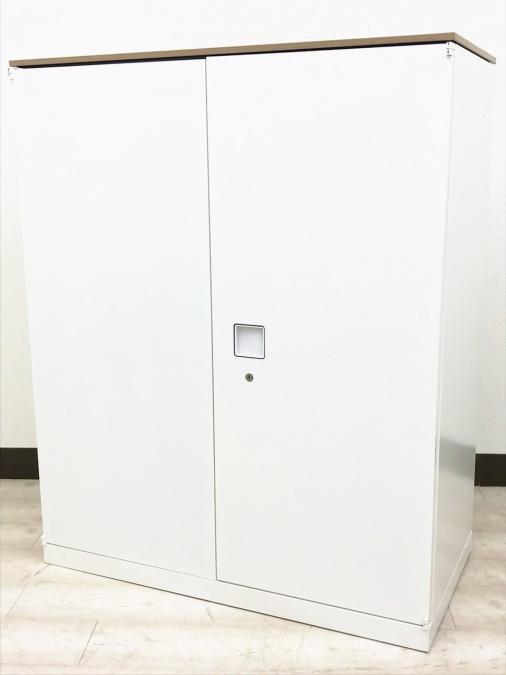 定番の両開き書庫!おしゃれな天板付きで使い勝手抜群!カウンターとしても! ■オカムラ/レクトライン/木目ブラウン天板/ホワイト- 立川・八王子店