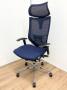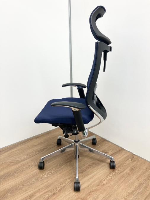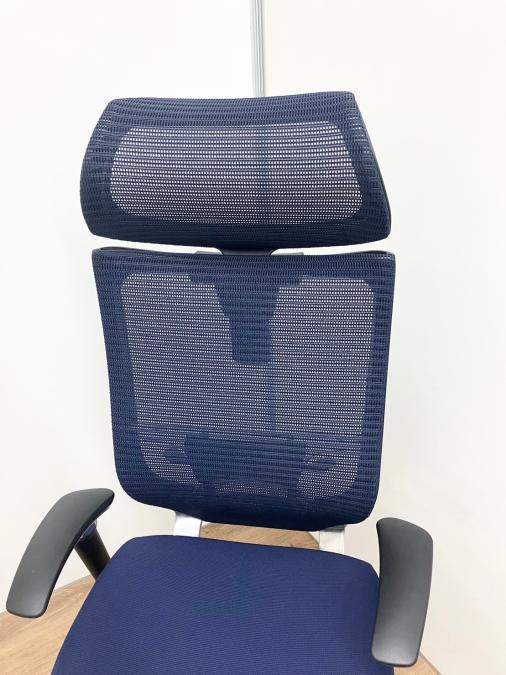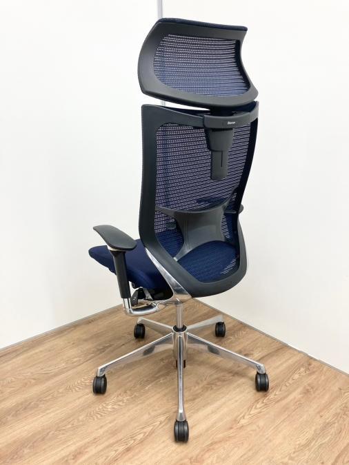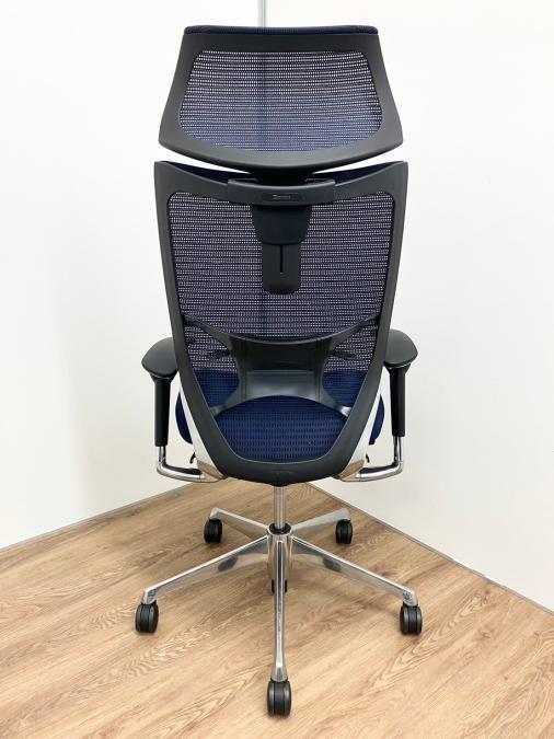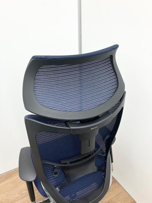 【新品ヘッドレスト付き】オカムラ/バロン/ブルー×ホワイト/可動肘/座面クッション【AD】