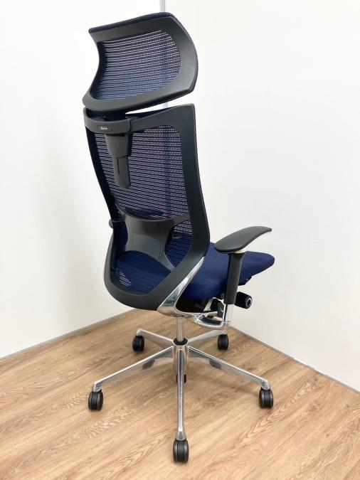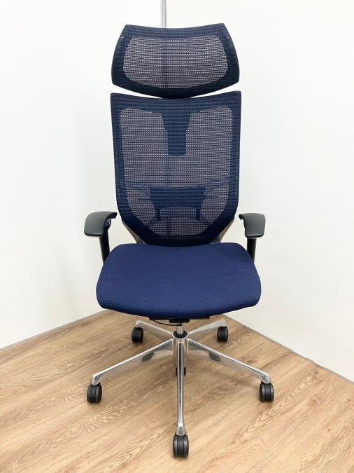 【オフィスの執務室、会議室におすすめ!】■オカムラ(okamura)製 バロン(Baron)チェア 肘付き ハイバック 背面メッシュ ■可動肘 ■ダークブルー × ホワイトシェル【硬めの座面が大人気!国産メッシュチェアの代表格!】【状態良好品!】