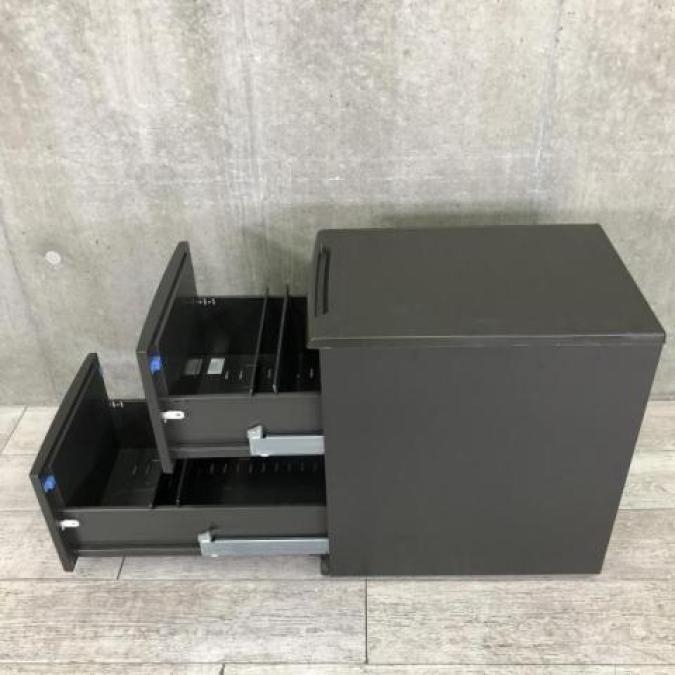 【ファイル書類をたっぷり収納できる!】■オカムラ製 2段ワゴン ブラック ■デスクサイドキャビネット- 池袋店
