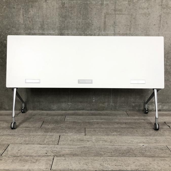 【折りたたみ収納が秀逸!スタイリッシュなデザインで高品質!】■オカムラ(okamura)製 インターアクトNTシリーズ(INTER ACTNT) サイドスタックテーブル W1500×D600×H720mm ■キャスター付 ■ホワイト