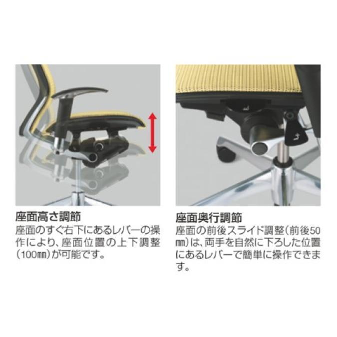 - 座面の右下にあるレバーの操作により座面位置を上下に100mm分調整することが可能です。