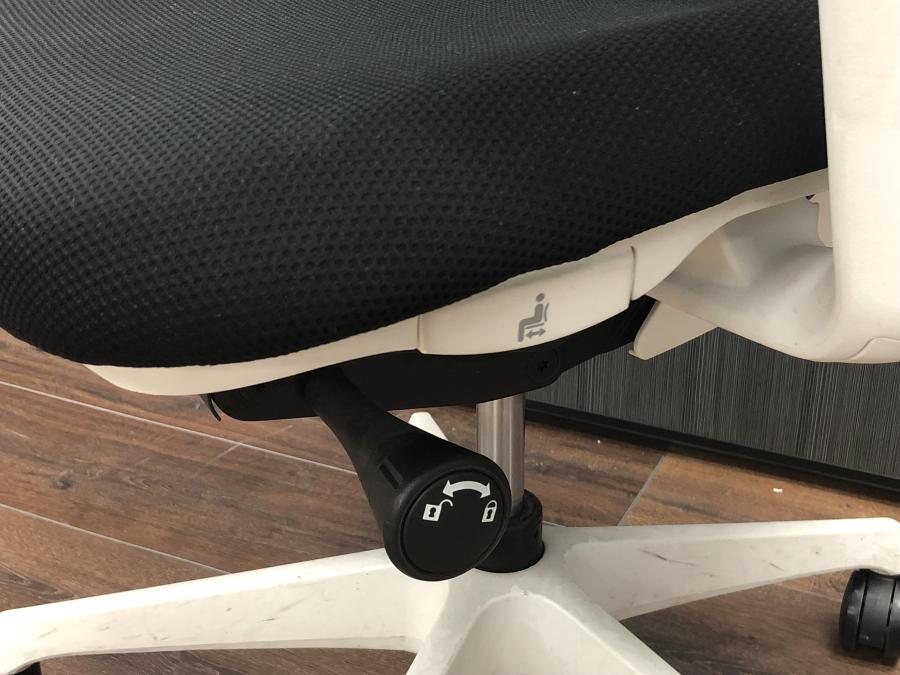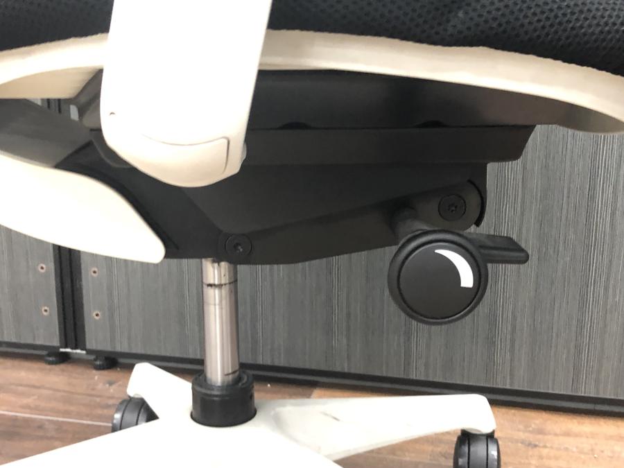 - 座面右下のダイヤル操作で、リクライニングの強弱調整が行えます。これまでのダイヤル式よりも、少ない回転数で、最弱?最強の調整が可能です。