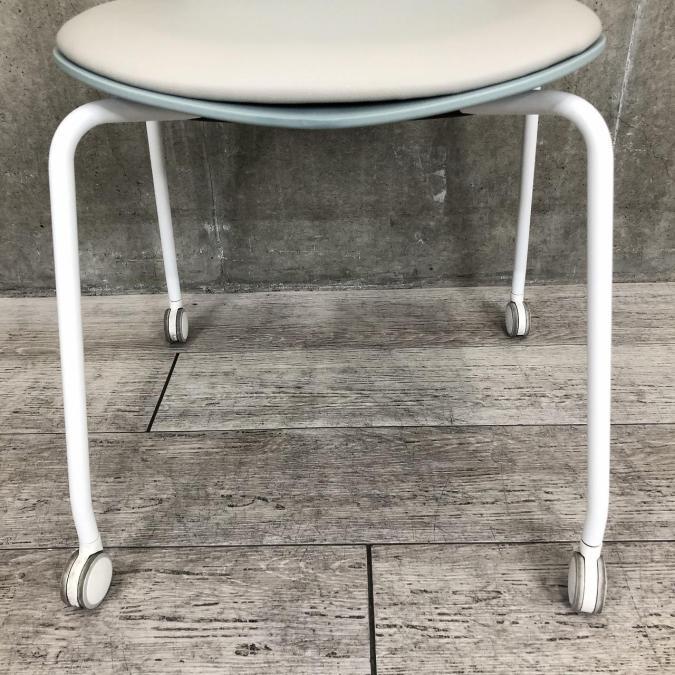 リフレッシュスペースにおすすめ!淡く爽やかな雰囲気を醸し出すカフェチェア!重ねて収納可能!キャスター付き ■コクヨ/ミケット(Mycket)/背:ホワイトターコイズ/座:ブライトグレー/フレーム:ホワイト- 立川・八王子店
