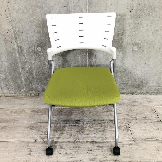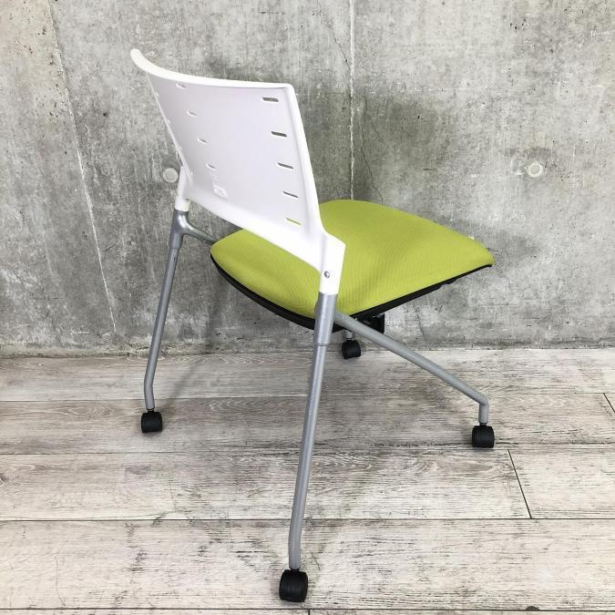 【重ねて収納!使い勝手抜群のネスティングチェア!】■イトーキ (ITOKI) マノス (MANOSS) チェア ネスティングチェア ミーティングチェア 肘付き 背パッドなし ■背:ホワイト/座グリーン ■キャスター付 ■固定肘 ■背面樹脂メッシュ