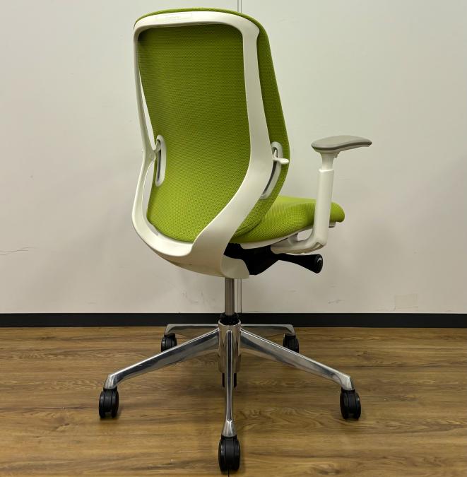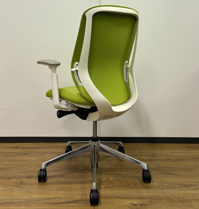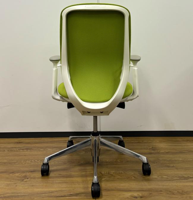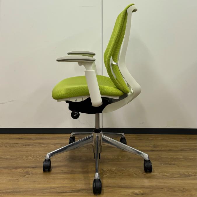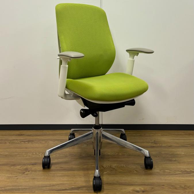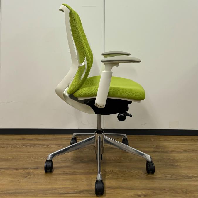 【在庫入替セール品】【人気のシルフィチェアヘッドレスト付きが1脚限定入荷!】オカムラ シルフィ ライムグリーン エクストラハイバック ホワイトフレーム デザインアーム(固定肘) 前傾チルト機能付き