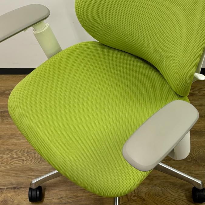 【限定1脚のみ】オカムラ シルフィ ライトグリーン 可動肘 ハイバック 背もたれ生地解れアリ- なんば日本橋店