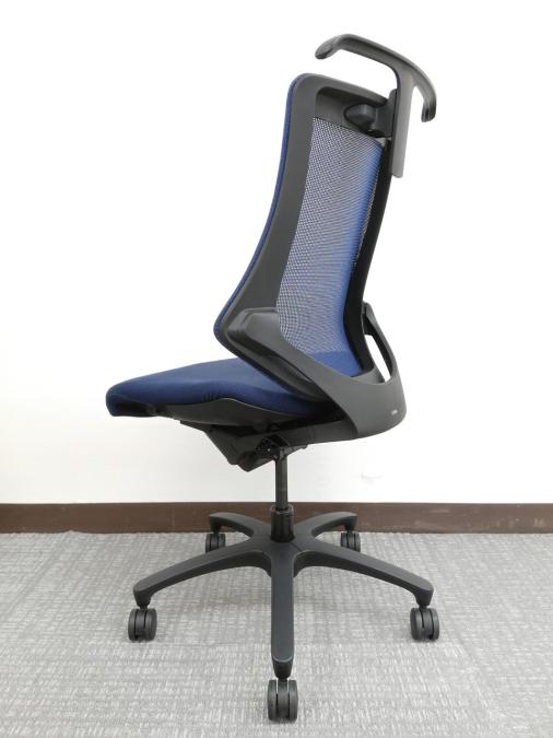 【姿勢の変化にフレキシブルに対応!スタイリッシュなデザインのメッシュチェア!】■イトーキ(ITOKI)製 エフチェア 肘無しハイバック メッシュバック ■ハンガー付 ■ネイビーブルー×ブラックシェル