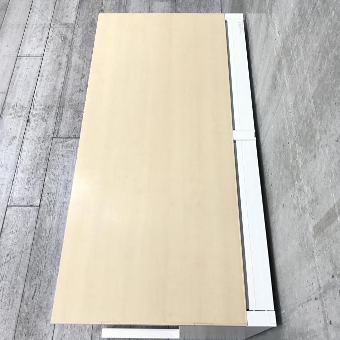 【人気!ナチュラル天板の平デスク!】■KOKUYO(コクヨ)isシリーズ 平デスク 引き出し付き ■ナチュラル天板×ホワイト脚【広く使える1400幅の平デスク】- 神戸・三宮店