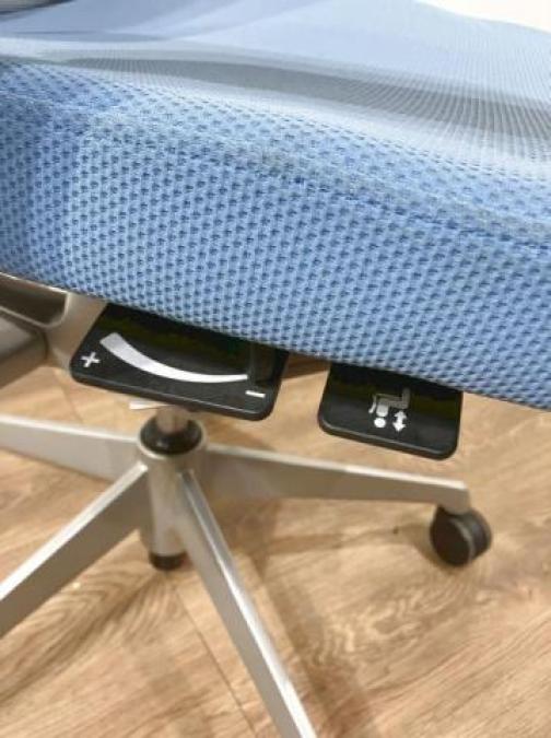 座面の高さや前後などの基本的な調整レバーが座面裏の前方に集約されており、姿勢を変えずに調節ができます。