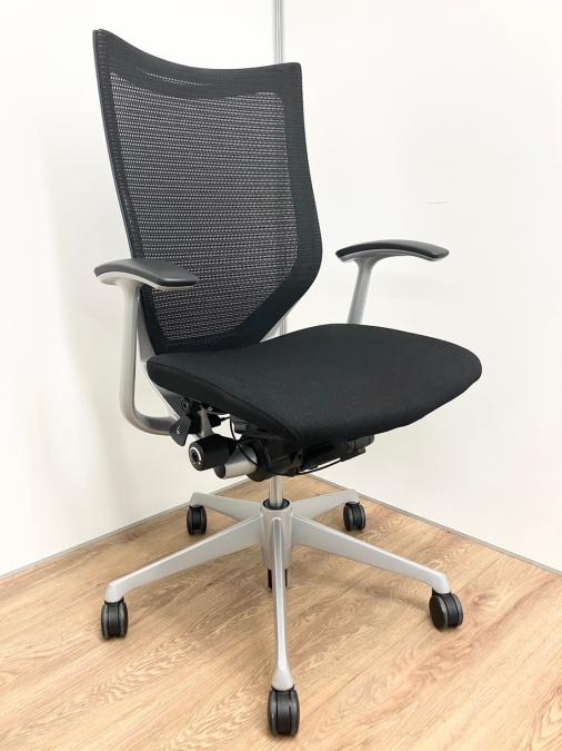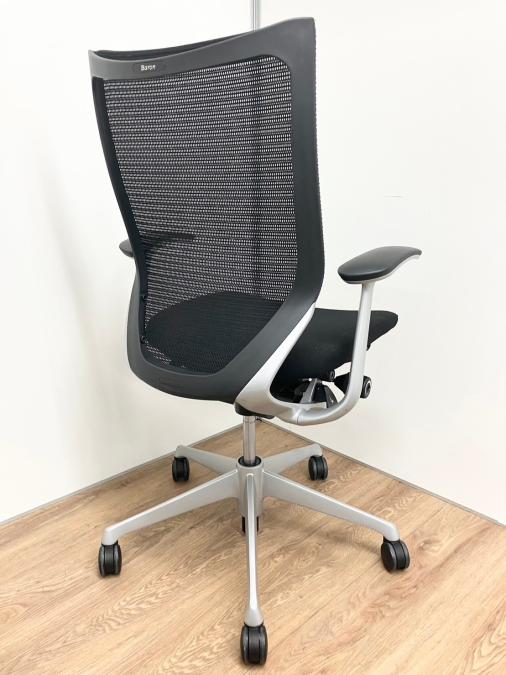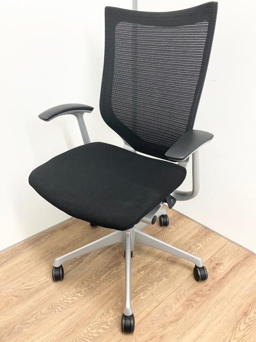 【長時間の着座でも疲れにくい!ベストなポジションが得られる先進設計!】■オカムラ バロンチェア 肘付 ブラック ハイバック シルバーフレーム ■良い椅子は腰を守る投資です!【Okamura Baron】